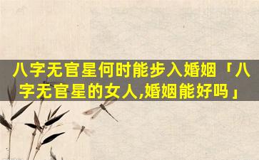 对于八 🦄 字无官星的女性,何,时,能步入婚姻要因人而异没有固定的答 🦋 案。不,过以下是一些可能的情况: