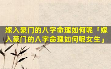 嫁入豪门八 🦁 字 🐬 命理特征 🌲