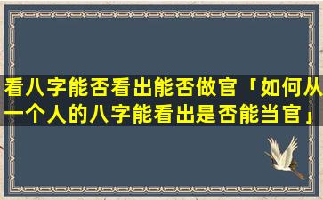 传统命理学中,是,否能做官 🦉 可以 🦋 通过八字来进行推测以下是一些可能与做官 🐞 相关的八字特征: