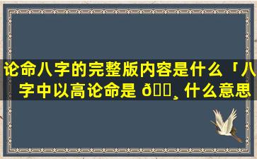 在八字命理学中,“高论命”是,指命,局中日干旺而通根有力且月令和时令与日干生扶 🌳 有力形成了明显的生旺格局。