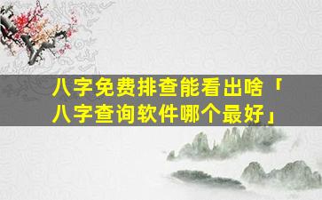八字免费 🐋 排查 🐯 能看出 🌺 :