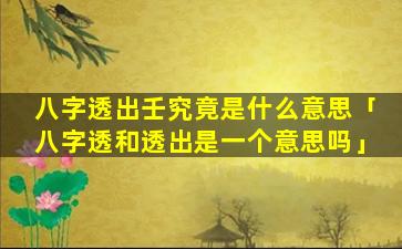 “八字透出壬 🐦 ”是指在一个人出生的八字命盘中壬,这个五行显露在八个天干或四个地支 🦢 中。