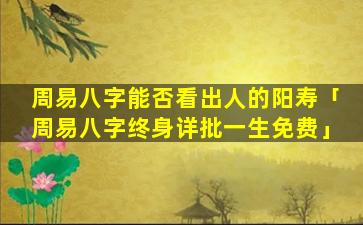 总 🦅 体而 🐳 言,周易和八字不能可靠地预测一个人的阳 🍀 寿。