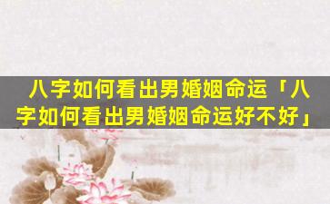 根据八字判断男性 🕊 婚 🦉 姻命运