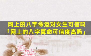 网上提供的八字命运分析对 🌻 女生是否可信,取,决于 🦈 各种因素包括: