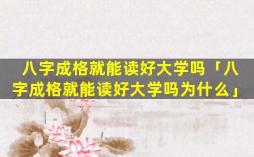 八字成格与 🦉 能否读好 🐶 大学没有直接关系 🐘 。