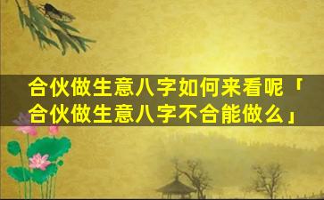 合伙人八 🌷 字 🍁 合不合的判断方法: