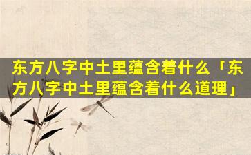 东方八字的土元 🕊 素所 🐱 蕴含的精神是: