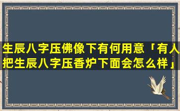 影响子孙:生辰八字也代表 💮 了 🦊 下一代的命运,将其压在香炉下可能会影响子孙后代的发展。
