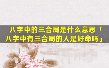 八字中出 🐬 现三合局,一般代表命主性格和睦、为,人,圆融有贵人相助做事容易获得成功。