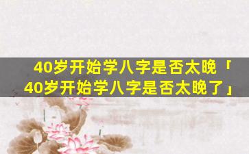 总体而 🦊 言,40 岁开始学八字并 🦋 不算太晚。只要有兴趣、持,之。以恒就可以在八字领域取得 🌳 一定的成就