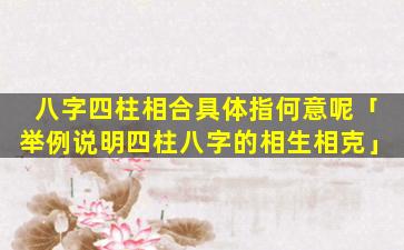 四柱相合是指八字命理中,年柱、月柱、日柱、时柱中两个 🌺 或多个柱的天干地支相互生合。
