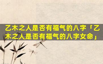 乙 🐈 木日主女命是否 🌹 有福气八字