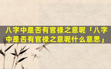 八字中 🐯 是否有官禄之意这句话的意思是:根据你的八字 🐕 命盘是否有,迹,象表明你具有官禄运势也就是将来有可能会在事业上取得成就或担任官职。