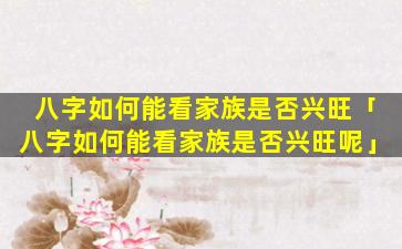 需要注意的是,八,字 🦊 看家族兴旺只是一个参考具体情况还需要结合其他因素进行综合判 🕷 断。