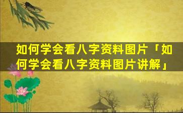 如何 🐒 学会看八字资 ☘ 料图片视频