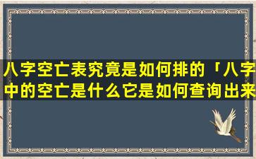 空亡,又称空“劫”,是指八字中日柱的天干所属的五行所对应的两个地支。例,如,甲,日柱的空 🕸 亡。为辰戌乙日柱 🐬 的空亡为巳亥依此类推