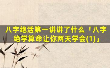 八字绝 🐘 学 🦊 算命让你两天学会(1)