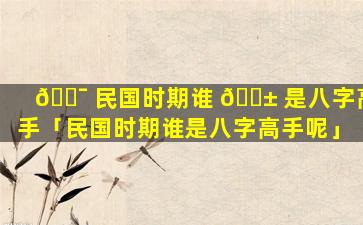 民 🍁 国时期女子八字命理分析