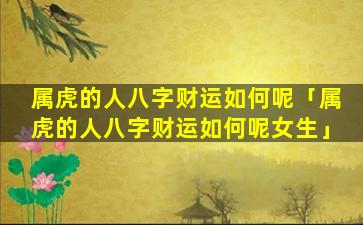 属 🐳 虎 🌳 女性 🍁 的八字财运