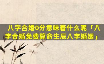 八字合婚 🐬 免费算命生辰八字婚姻