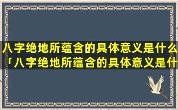 含义:绝地意味着生 🐒 机被克制,不利于发展。在,八字命理中绝地通常代表: