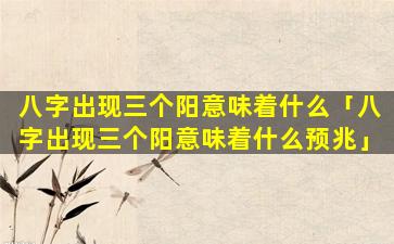 八字中出现 🐋 三个阳 🍀 一般有 🐴 以下几种含义: