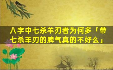 在八字命理 🐱 学中,七杀和羊刃都是不利于脾气的星曜。