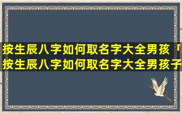 按生 🐋 辰八字取 🌼 名大 💮 全男孩子