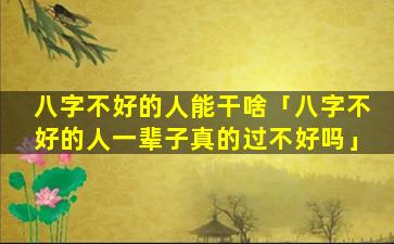 神话:八 🕸 字 🌴 不好的人一辈子过不 🦁 好。