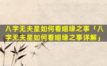 八 🦈 字无夫星如何看姻 🦄 缘之事