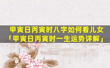 甲 🦁 寅日丙寅时八字 🦈 看子女信息