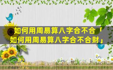 用周 🦄 易 🌼 算八字 🐋 合不合的方法
