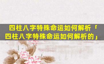四柱八字命理学中,存,在着一些特殊的组合被称为特殊命“运”。这些特殊组合预示着独特的性 🌹 格、经。历和人生轨迹以下是如何解 🐝 析四柱 🐶 八字特殊命运的方法: