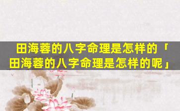 总体来 🐯 看,田海蓉的八字命理具有以下特 🌼 点:
