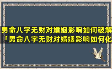 男命八字无财对婚姻 🐕 的影响