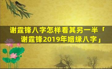 谢霆 🐦 锋的八 🌿 字格局 🐡 :