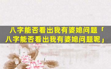 八字可以从一定程度上看出 🦈 一个人是否有婆媳问题的倾向 🦆 ,但不能完 🐋 全决定。