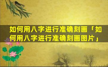 用八字进 🕷 行 🌲 准确刻画人物方法 🐯