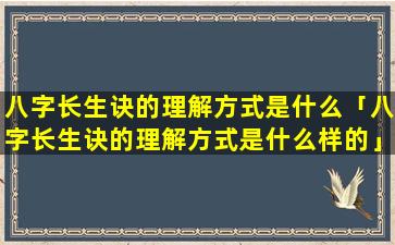 八字长 🌻 生诀的理 🐈 解方 🐦 式