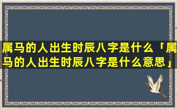 属 🌹 马之人 🦢 的出生时辰八字