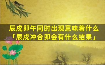 “辰戌冲合卯”指的是四柱八字命 🐡 理中的相 🕊 冲相合关 🐎 系: