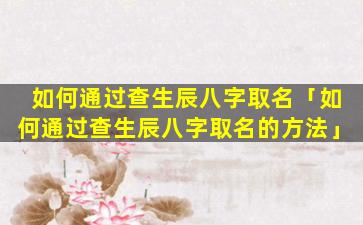 如何通过生 🐡 辰 🐋 八 🐡 字取名字