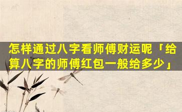 给算八字 🐎 师 💐 傅的红包金额通常没有固定标准,因地区师傅、名、气服务内容等因素而异。一般建议参考以下 🐟 范围: