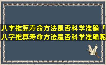 八字推 🌳 算寿命的方法是否科学准 🦄 确仍是一个有争议的问题。