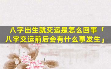 所谓“八字出生就交 🌲 运 🐯 ”是指人出生时 🐶 ,同时也是交运的时候。