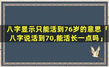 因 🐝 此,单凭八字显示只能活到76岁,并不意味着这是不可改变的可。以,通过后天的努力 🌿 如保持健康的生活习惯、积,极的。心态和良 🌸 好的医疗保健来延长寿命