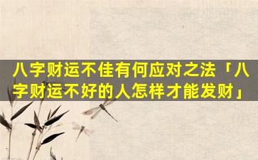 八字财 🕊 运不好 🐈 的人如何改善财运 🌳