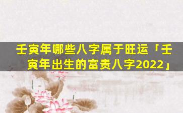 在壬 🐼 寅年,以下八字属于旺运: