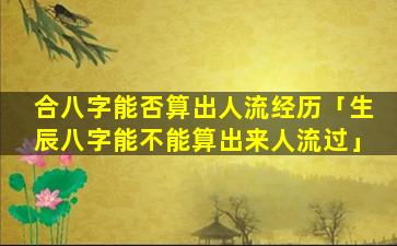 合八字 🐶 无法准确算出人流经历。